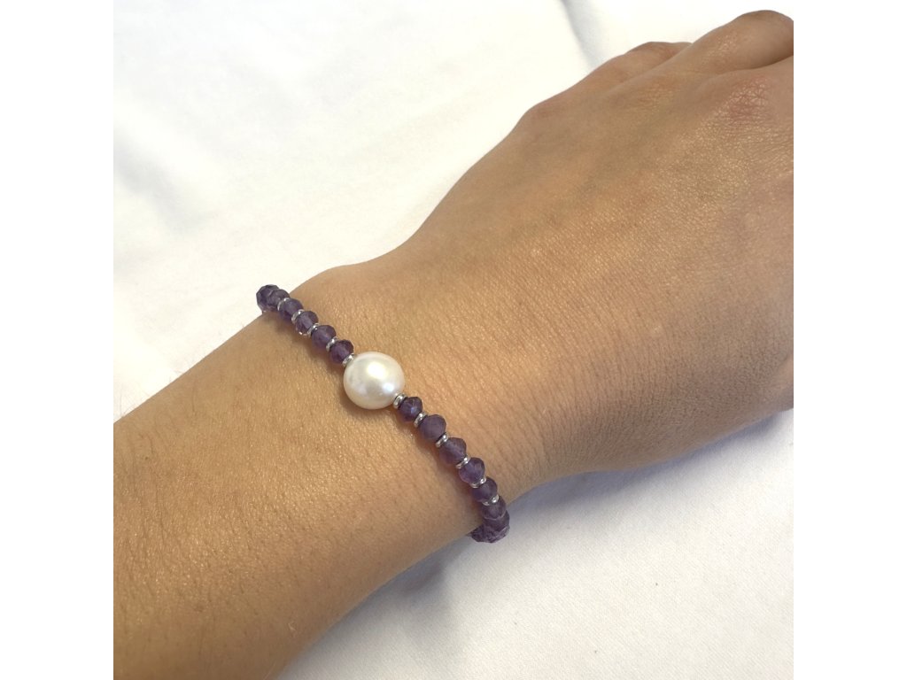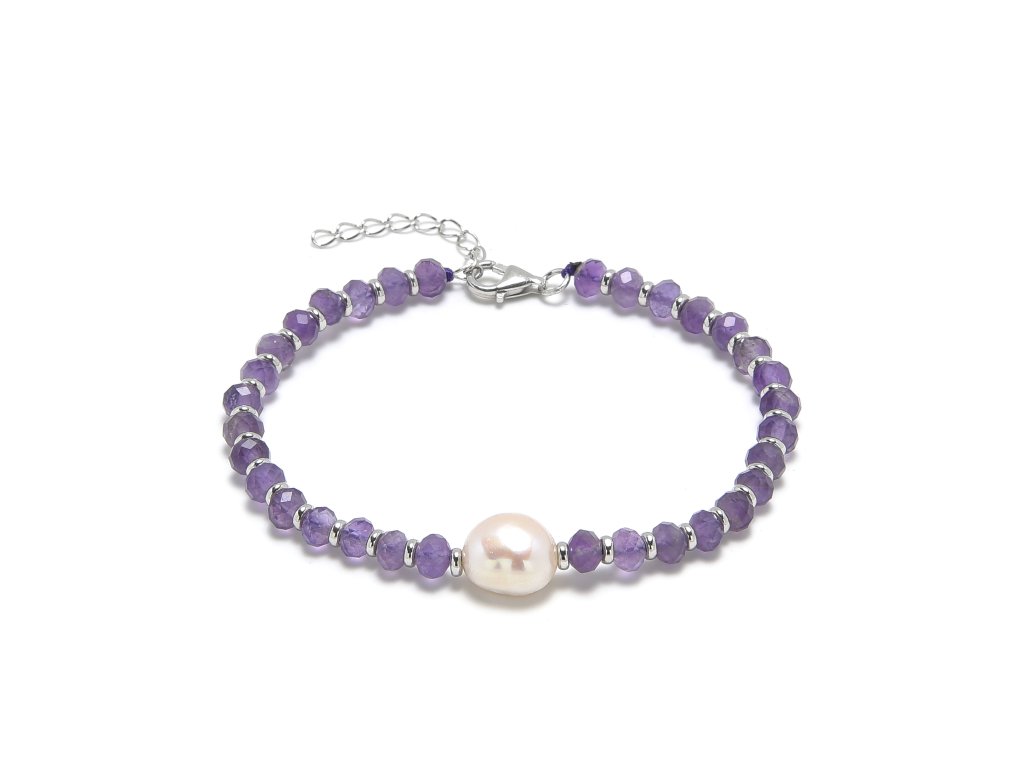 Stříbrný náramek s ametystem a říční perlou