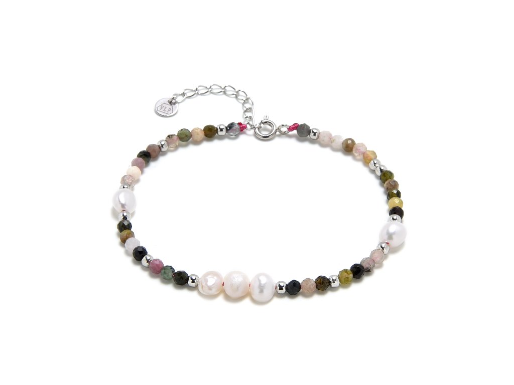 Stříbrný náramek s barevným turmalínem a říčními perlami XBA29/16,5+3