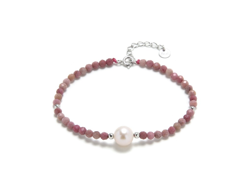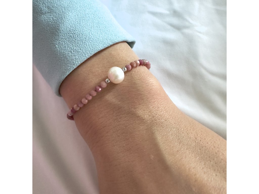 Stříbrný náramek s růžovým turmalínem a říčními perlami XBA31/9/16,5+3