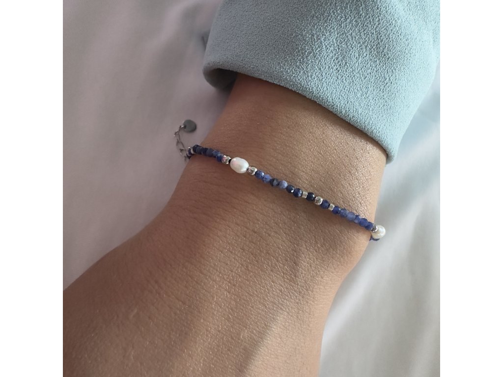 Stříbrný náramek se sodalitem a říčními perlami XBA34/2/16+3